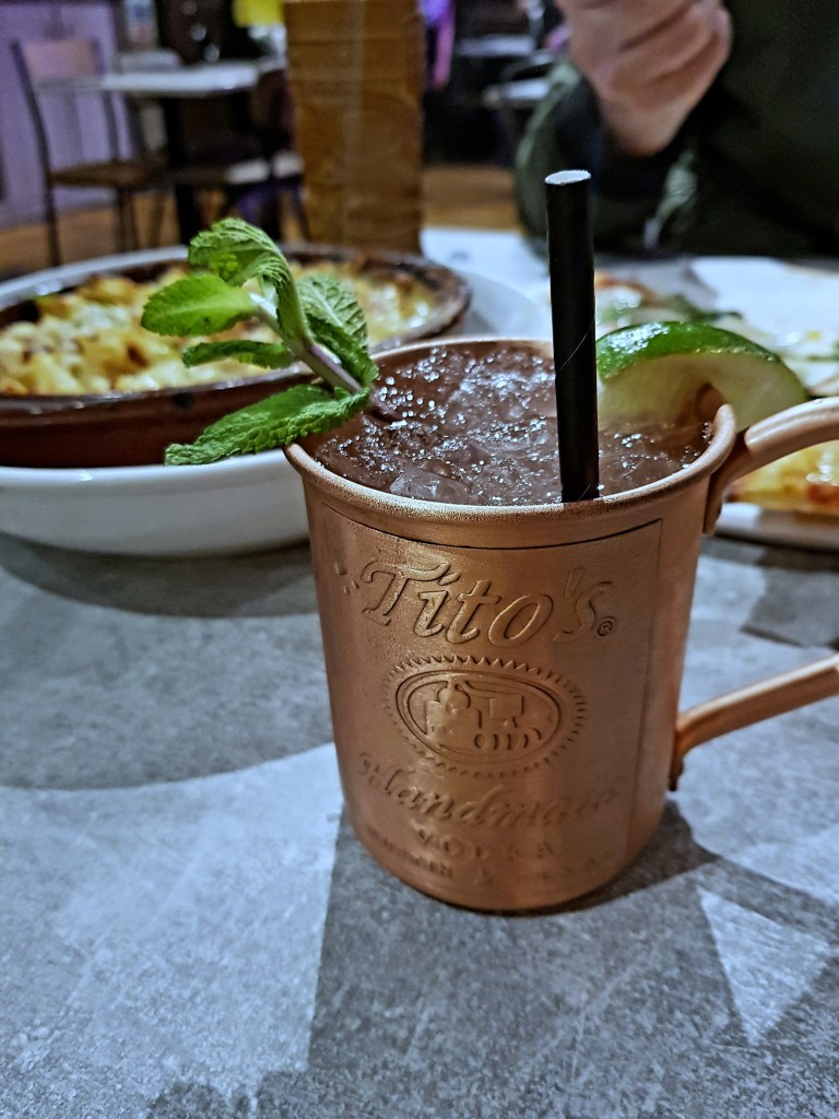 It’s cocktail time! Tito’s mule; only-dams martini; Jamaica queens; mango rum cooler.